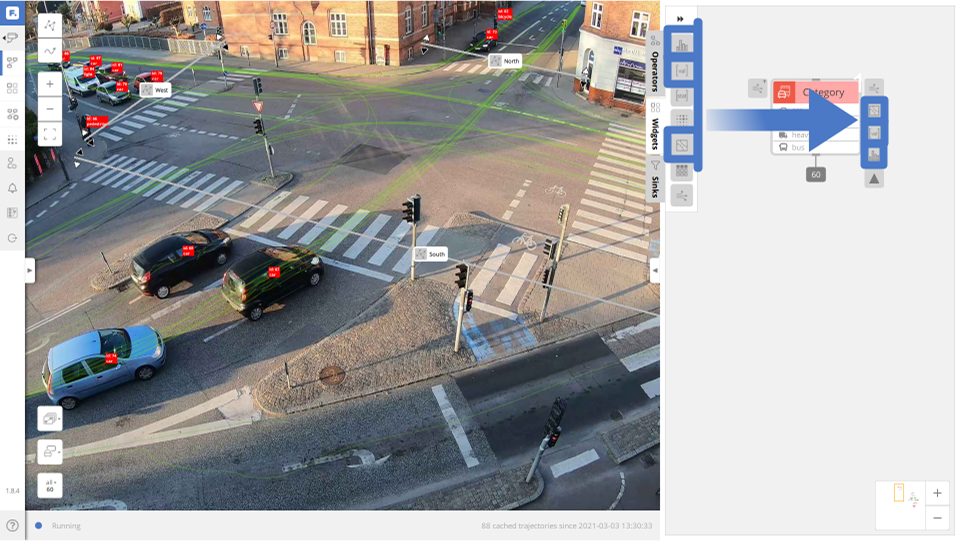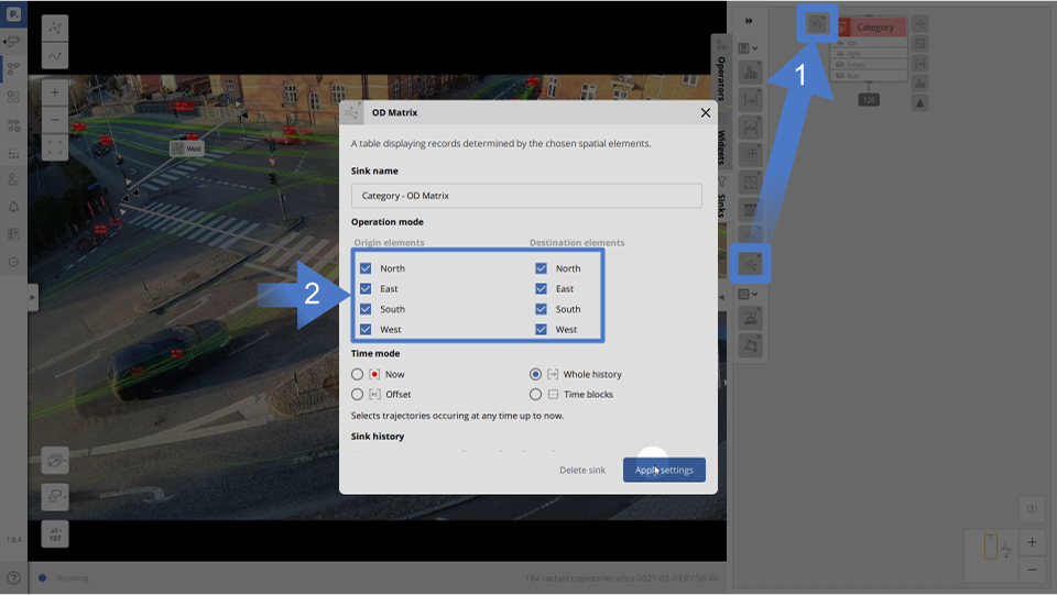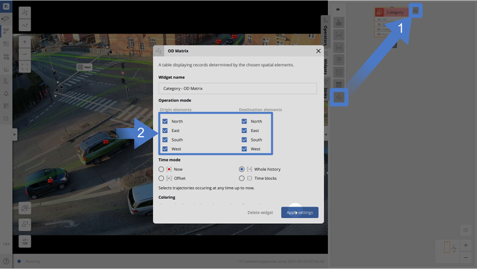 Origin-Destination (OD) matrix is an important tool for traffic analysis. OD matrices are useful for analyzing the directions of traffic flow and for measuring the level of service. Definition of an OD matrix is super easy in FLOW Insights, and the data is unique as you don’t only get historical data but also real-time data.